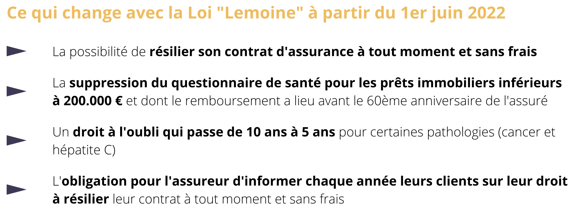 Grâce à la Loi "Lemoine" adoptée définitivement le 17 février 2022, l'assurance de prêt s'ouvre au changement infra-annuel, offrant ainsi une plus grande souplesse au marché de l'assurance emprunteur. S'il fallait jusqu'ici attendre la date anniversaire de l'offre de prêt ou les 12 mois à compter de l'offre de prêt, il sera désormais possible de changer d'assurance emprunteur à tout moment et sans frais à partir du 1er juin 2022 pour les nouveaux contrats et le 1er septembre pour les contrats en cours.